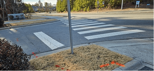 Contractors working on behalf of Cary located and marked existing utility infrastructure this week near Panther Creek High School. This Subsurface Utility Engineering (SUE) work is part of the McCrimmon Parkway Pedestrian Improvements project, which will construct two new pedestrian crossings and a new traffic signal to improve mobility near the school. The information collected will supplement the surveying work completed earlier this year by Cary’s in-house survey team and, together, will form the basis for detailed project design. The recent survey work and this SUE effort are keeping the project on schedule for completion ahead of the 2027-2028 school year.