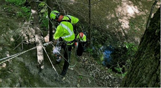Recently, a small population of hemlocks located on steep, difficult-to-access sections of the bluffs required treatment. Staff arborists Kelly Blair and Joe Morgan worked with Hemlock Bluffs staff to rappel the bluff face and treat these trees, helping maintain this sensitive and defining natural area.
