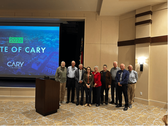 Mayor Harold Weinbrecht gave remarks at the State of Cary presentation at Searstone; also in attendance was Councilmember Brittany Richards. This event provided updates on Cary’s growth, key initiatives, and future plans while engaging residents in meaningful dialogue.