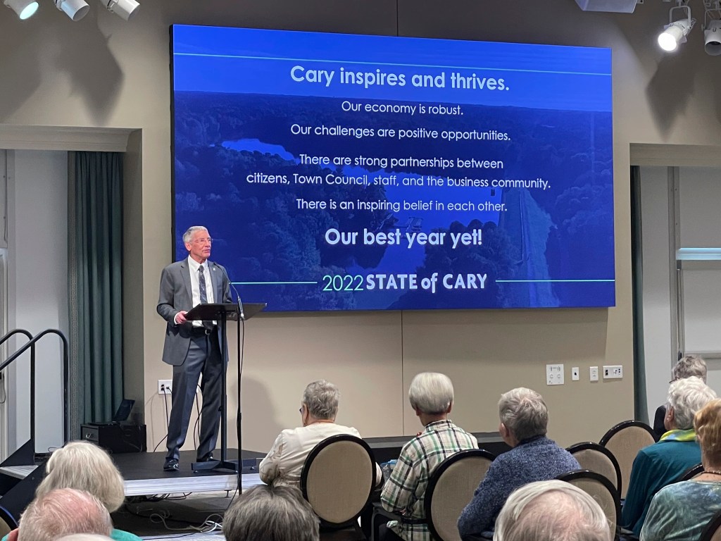 This week, the Mayor presented the State of Cary to Glenaire residents and MacGregor Rotary Club members. Council Member Ed Yerha joined the Mayor at Glenaire to give a presentation about Cary’s history.
