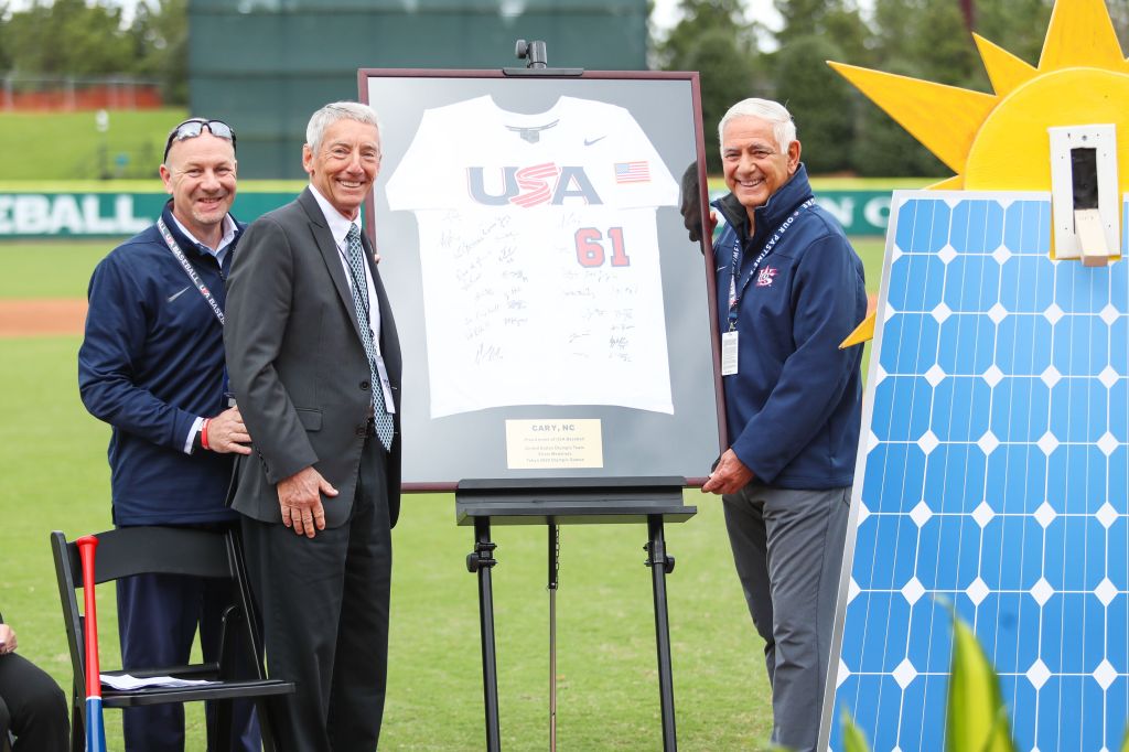 I was the emcee for the ceremony which included remarks from George Grande of the USA Baseball Board of Directors. He was also the first broadcaster for ESPN.