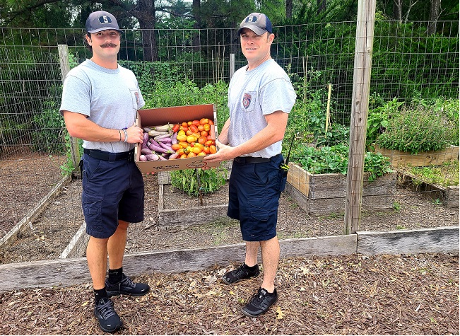 In honor of September 11 and appreciation for first responders, citizen volunteers have built gardens at Fire Stations #1-8. Recently, these station gardens have been revived and given a fresh purpose. In addition to the firefighters growing fruits and vegetables for their own meals, they are now sharing their bounty with the community through Dorcas. This week, Fire Station #5 provided 15 pounds of tomatoes and eggplant.