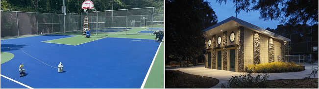 With the exception of a few punch list items still to come, renovations to Annie Jones, Walnut Street, and Dunham parks are complete. Upgrades include six renovated post-tension concrete tennis courts and a new restroom at Annie Jones Park, two new pickleball courts and one basketball court at Walnut Street Park, and court renovations at Dunham Park.
