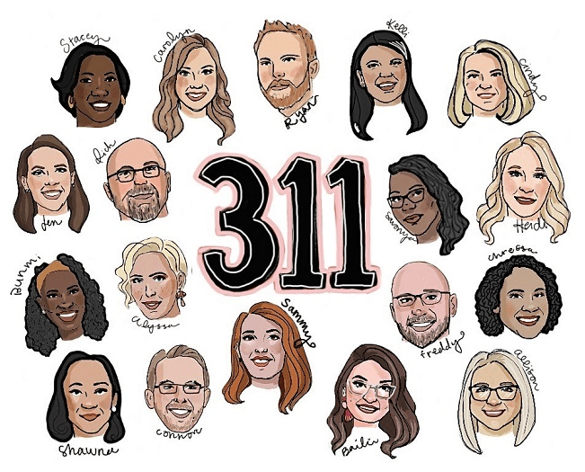 As construction wraps up in the new 311 Center, look for opportunities later this spring to visit the new space, listen in on calls, and meet our citizen advocates, who are illustrated above by one of our very talented citizen advocates, Bailie Pickering!