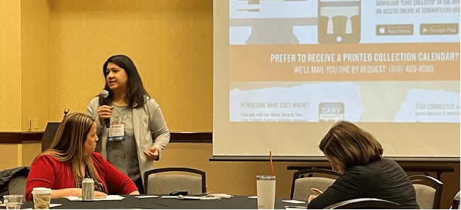 Srijana Guilford, Waste Strategy and Community Impact Consultant, presented how Cary embraces technology to enhance communication and engagement with the community at the American Public Works Association-NC annual conference. This event brings together the NC Chapter divisions of Leadership & Management, Facilities & Grounds, Equipment Services, Solid Waste, Stormwater Management, and Streets for training sessions focused on technology, leadership, and career development in Public Works.