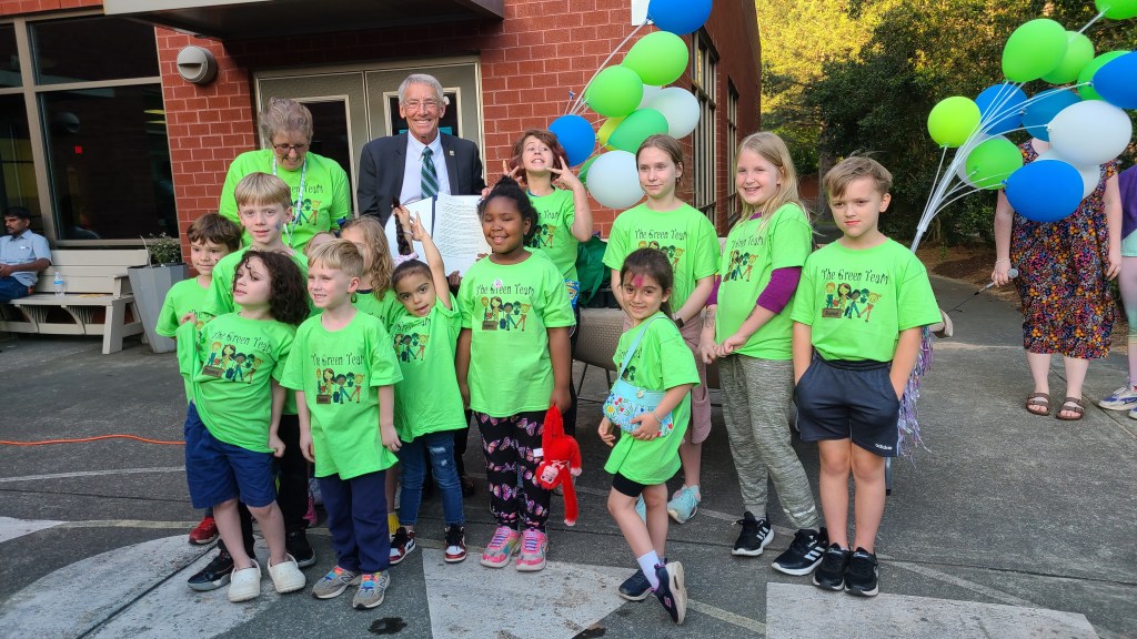On Tuesday, Mayor Weinbrecht presented the Earth Day Proclamation to the Junior Green Team at Kingswood Elementary School. Kingswood held its annual Earth Day fair that included vendors, food trucks, and activities. Cary It Green also participated as a vendor and handed out material related to the Count Me In Cary initiative.
