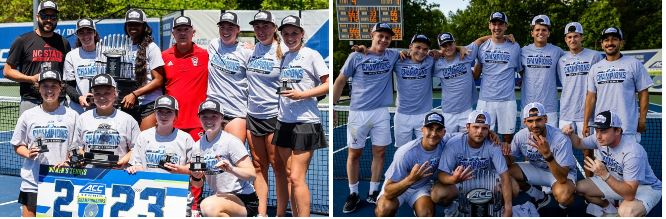 The Atlantic Coast Conference Tennis Championships were held this past weekend, April 19 – 23, at Cary Tennis Park. The NC State Wolfpack upset the top-ranked University of North Carolina Tarheels in the Women’s Final. This was the Wolfpack Women’s’ first ACC Championship title. In the Men’s Final, the top-seeded Virginia Cavaliers defeated the Duke Blue Devils for their 3rd straight ACC Championship. More than 3,000 spectators were in attendance, with ticket sales almost doubled from the last time ACCs were hosted in 2019. The new collegiate seating was a big hit with spectators and teams! The ACC Tennis Championships will be back at Cary Tennis Park in 2024.