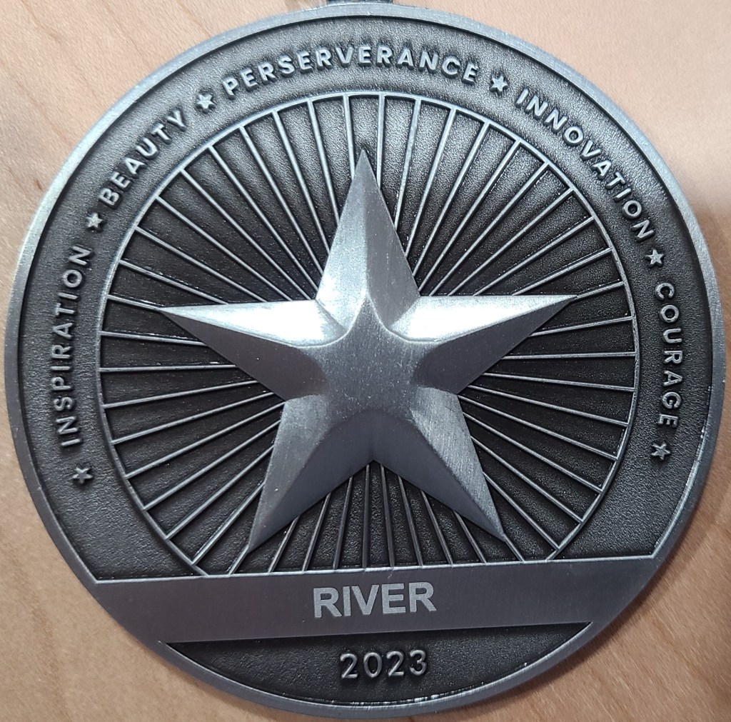 River, an exceptional 21-year-old mare, holds a vital role as a therapy horse within CORRAL. Through a profound bond between participants and horses, River plays a pivotal part in teaching young women the essential lessons of trust and emotional regulation. Prior to joining CORRAL’s herd, River demonstrated her athletic prowess in seven thrilling races, securing two well-deserved victories, as well as an impressive second and third-place finish. Similar to many participants, River overcame challenges, moving between foster farms until finding her permanent home in the welcoming community of Cary. The awe-inspiring qualities of inspiration, perseverance, and courage radiate not only from River but also from her fellow herd mates and the courageous girls actively engaged in the transformative program. These qualities exemplify the deserving individuals recognized through the presentation of the esteemed medallion.
