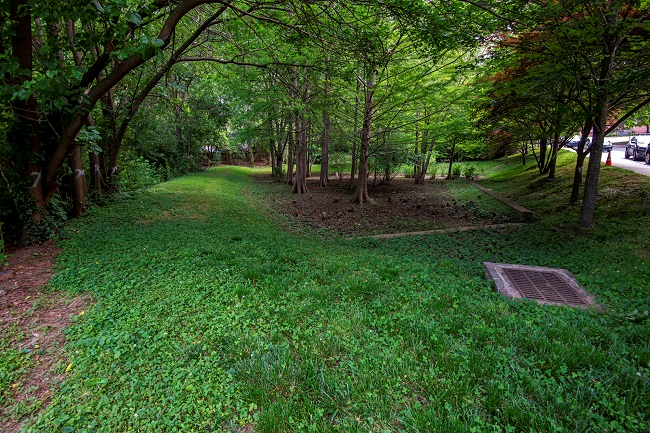 Today, children from Cary Elementary School will stream out of the building for summer vacation, leaving the area available for Cary to begin rehabilitating the stormwater control measure located on Faculty Drive. Roots from bald cypress that have grown in the bioretention cell have damaged the underdrain and clogged the filter media, inhibiting stormwater from effectively infiltrating the ground. The existing vegetation and soil filter media will be removed, and the underdrain system will be eliminated and replaced with a new system and filter media. In addition, the improved device will have an increased capacity to retain stormwater from larger storms and release it slowly, reducing the potential for flooding downstream. It will be planted with native shrubs, forbs, and grasses, including several pollinator species, to help it remove pollutants that enter it from water flowing over the school and arts center parking lots. The project will take six to eight weeks to complete.