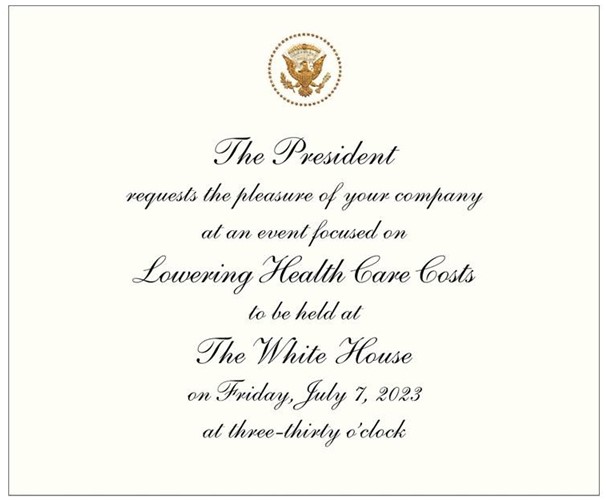 Monday I received an invitation to attend an event at the White House on lowering health care costs. While this was a once in a lifetime invitation, I just could not make the logistics work to be able to attend. Who knows, maybe I will get lucky and get invited again.
