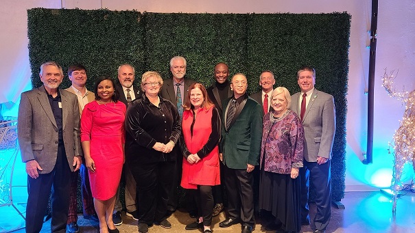 Monday night I joined council members Smith, Bansal, and Craig along with several staff members in attending the annual Wake County Mayors Association’s Holiday Dinner. All mayors were in attendance along with other elected officials and staff members. Since it was the first time we had been together in about a year, we made sure to take a picture. The event was planned and run by the Zebulon mayor and staff. It was held in Raleigh and catered by Catering by Design from Cary. Each municipality supplied swag baskets that were auctioned off to raise money for Meals on Wheels. There was great conversation and fellowship, and a good time was had by all.