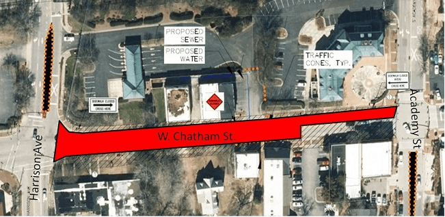 Beginning January 22, weather permitting, West Chatham Street will be closed between Harrison Avenue and Academy Street. The temporary road closure is expected to last one week.