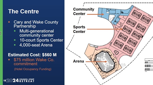 Cary Community Sports and Recreation Center: $560 million with $75 million from Wake County