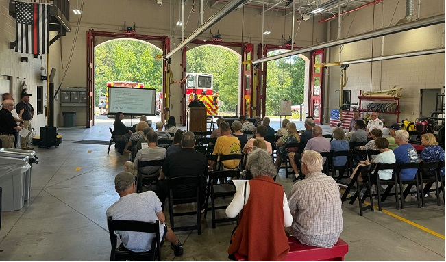 Councilmembers Sarika Bansal and Lori Bush, along with staff from the Town Manager’s Office, Fire, and Police, joined about 80 citizens at Fire Station 8 on Wednesday. The meeting, organized by staff from Chatham County and FirstHealth Regional, was held to provide information on the upcoming EMS service change for citizens living in the Chatham County portion of Cary.