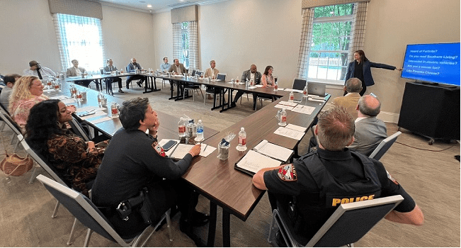 The Wake County Hospitality Alliance (WCHA) invited representatives from the Town Manager’s Office and Police Department to speak Wednesday at The Mayton. Marketing and Creative Manager Kristy Buchanan explained Cary’s strategy to reach more audiences outside of North Carolina, while Captain Kat Christian and Lieutenant John Reeves answered questions and shared more about their community partnerships. The WCHA strives to improve our area’s quality of life by promoting and protecting travel and tourism at the local level.