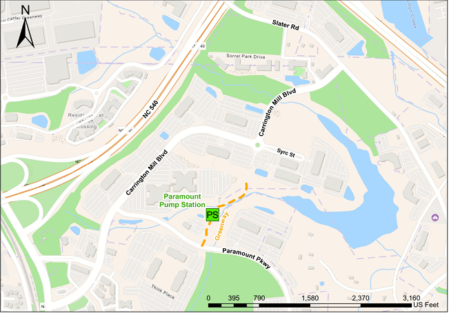 Notifications have been sent to nearby residents and business owners, with more information available on the Town of Cary and Morrisville websites. The construction will not affect the use of the nearby greenway or the operation of the existing pump station.