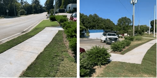 Over the summer, refreshed pavement markings and Zicla bumpers were added to the roundabout to slow traffic and improve pedestrian visibility. The new sidewalk connection encourages pedestrians to use the crosswalks at the roundabout, providing a safer option than crossing mid-block along Old Apex Road. Cary also has an Old Apex Road sidewalk project planned for construction in 2025.