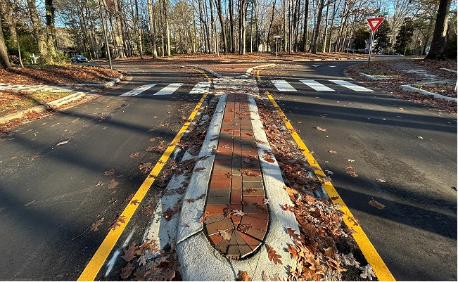 This year’s Street Improvements Project is substantially complete with pedestrian improvements recently being installed along the traffic circle at Greenwood Circle and Seabrook Ave. The improvements include new sidewalk connections, ADA complaint curb ramps, brick pedestrian refugees, and high-visibility pavement markings. These facilities provide an ADA accessible path around the traffic circle. This work was funded through the Spot Traffic Safety Program and incorporated into our Street Improvements Project, increasing efficiency allowing this work to be completed while the road was repaved. The remaining items include some final pavement markings, signage, and punch list items, which will be completed as weather permits.