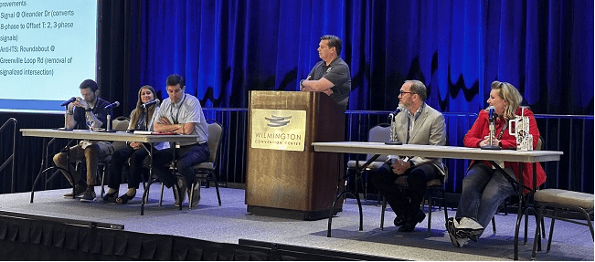 This week, Transportation staff attended the 2025 ITS Carolinas Annual Meeting held at the Wilmington Convention Center. The conference featured 12 technical sessions covering topics such as AI applications, municipal project updates, and grant funding experiences. Transportation Engineering Manager David Spencer was honored with ITS Carolinas’ 2025 Outstanding Commitment Award and staff contributed to panel discussions on out-of-pavement technology and the future of Intelligent Transportation Systems (ITS) in the public sector.
