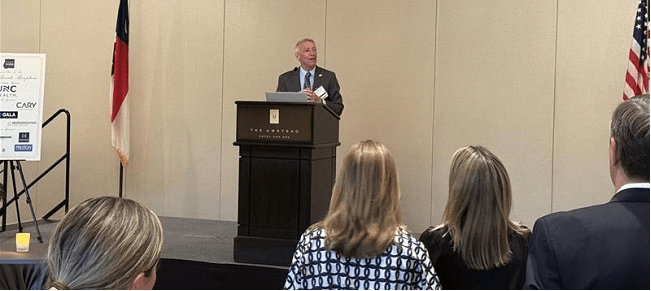 Mayor Weinbrecht delivered remarks at the Cary Chamber Elected Officials Reception, held at the Umstead Hotel and Spa. He was joined by Mayor Pro Tem Jennifer Bryson Robinson and Councilmembers Jack Smith, Carissa Kohn-Johnson, Michelle Craig, and Sarika Bansal. The event focused on fostering relationships and partnerships among elected officials, business leaders, and community members.
