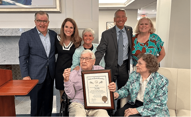 On Tuesday, Mayor Harold Weinbrecht joined Senator Gale Adcock at The Templeton to present North Carolina’s highest honor, The Order of the Long Leaf Pine, to Cary artist Jerry Miller, founder of the beloved Lazy Daze Arts and Crafts Festival. Mayor Pro Tem Jennifer Bryson Robinson was also present to help celebrate Jerry’s remarkable contributions to Cary and North Carolina. Nominated by Howard Johnson and Joy Ennis, Jerry was honored for his decades of artistic work and community impact.
