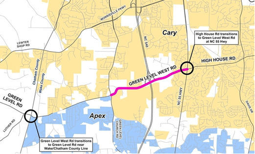 In June of 2025, Council voted to rename a portion of Green Level West Road to High House Road, from NC 55 to Green Level Church Road, with an effective date of January 30, 2026. Wake County’s Board of Commissioners later voted to approve the renaming in August of 2025. This week, staff sent out the second reminder letter to property owners on Green Level West Road that will be re-addressed, along with an FAQ sheet on readdressing. Properties to be re-addressed will receive $300 to defray the costs of changing their address.