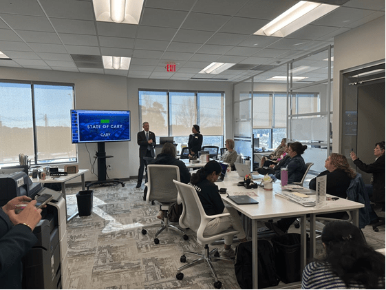 Mayor Harold Weinbrecht presented the State of Cary at Howard Hanna Allen Tate Real Estate, with Councilmember Sarika Bansal also in attendance. The presentation highlighted Cary’s progress and was followed by an engaging Q&A session.
