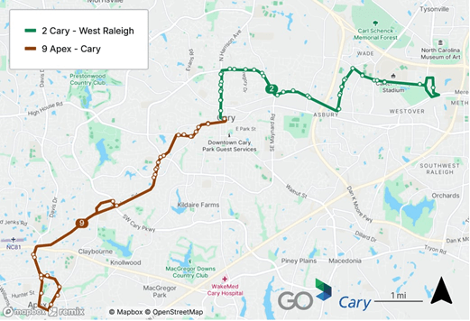 Two nights remain for GoCary’s special Downtown Loop “light-seeing” service; Tuesday, December 16, and Tuesday, December 23. This free, no-reservation service invites the community to enjoy twinkling lights, festive decorations, and other Heart of the Holidays activities. The Downtown Loop will follow its regular route, beginning at the Town Hall parking deck at 6 p.m. and running continuously until 8 p.m., with each loop taking about 25 minutes. Parking is available at Town Hall, and riders may board at the bus stop outside the parking deck or at any of the 13 Downtown Loop stops.