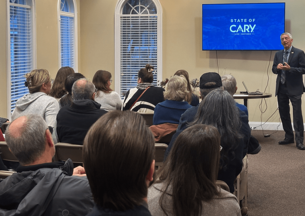 Tuesday I spoke to several dozen business leaders at the Cary Chamber as part of their Leadership Cary class. I talked about my role as mayor and answered several questions. Businesses ARE the backbone of our community, and I was encouraged by the number of business leaders attending.