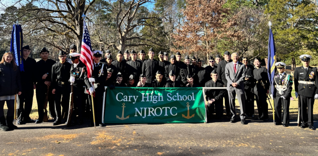 Saturday I was honored to participate in the Wreaths Across America ceremony at Hillcrest Cemetery. The event was attended by over a hundred people including Cary High School JROTC who I joined in a picture. As part of the ceremony, I provided remarks which included the following: